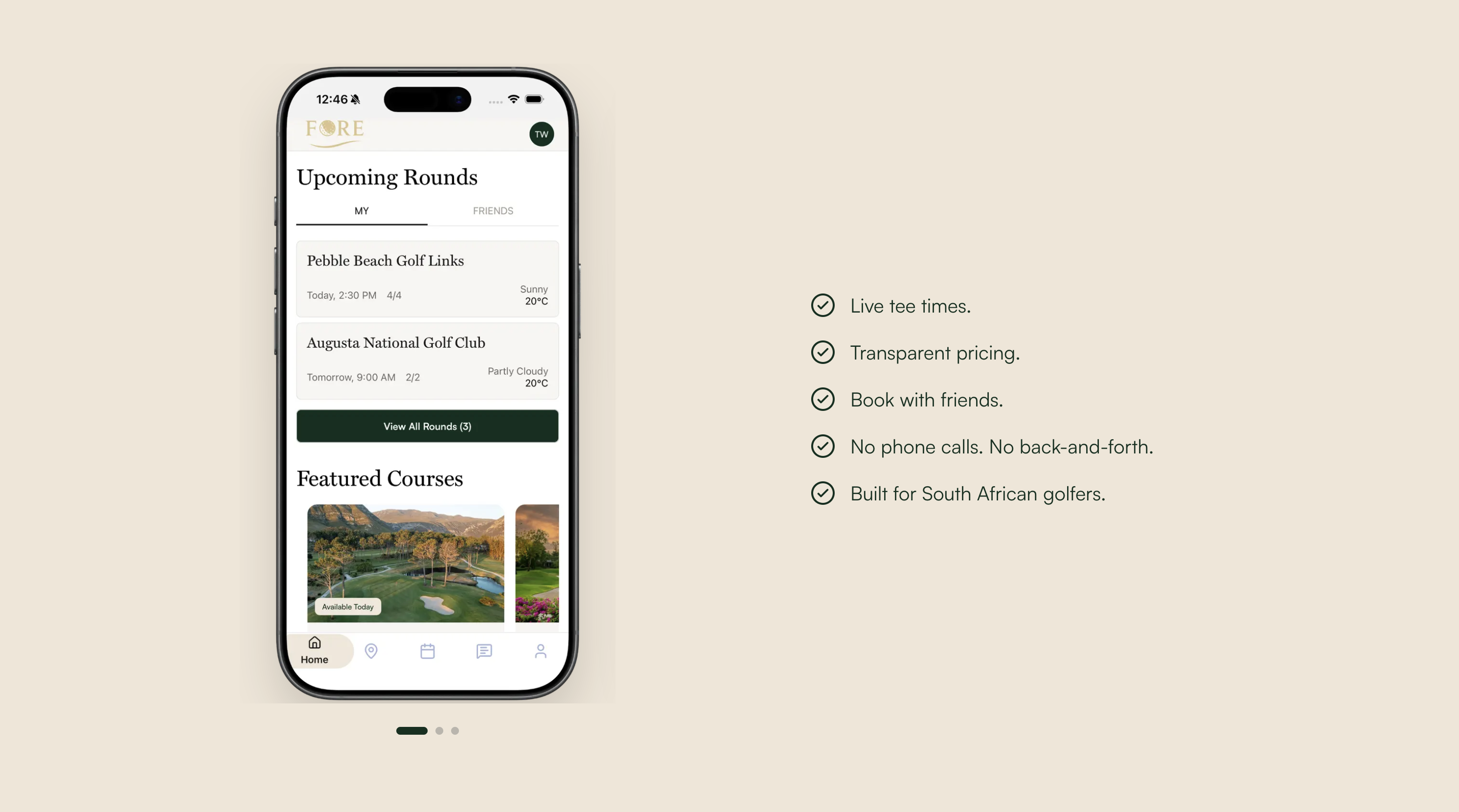 A React Native mobile application for booking golf tee times with a comprehensive integrated admin dashboard for managing courses, bookings, and users.